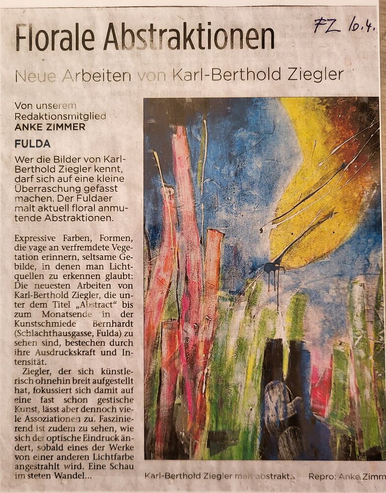 Karl Berthold Ziegler - Neue Werke Ausstellung im Showroom Kutscherhaus Januar bis März 2024